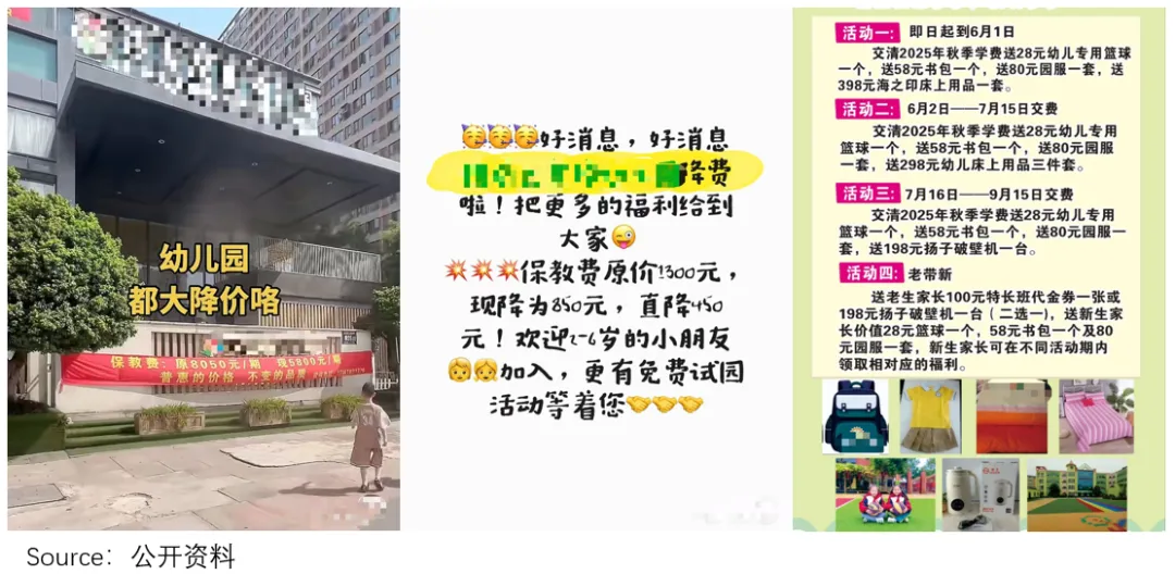 無奈之下,許多幼兒園不得不打出降價牌:降兩三萬還免一年餐費的不少,報名送花生油、大米甚至免一學期託管費的,也大有人在。