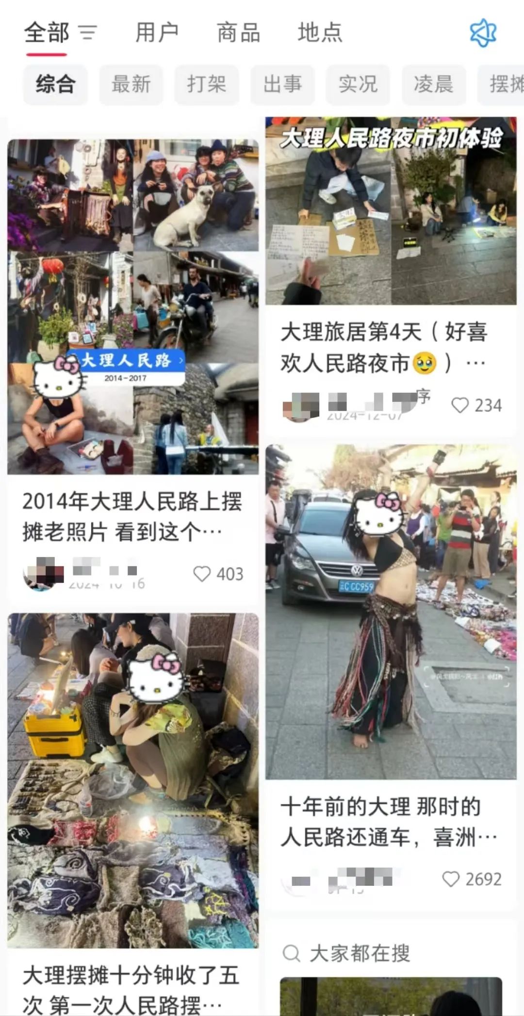 ✎ 大理人民路,被旅居者擺攤文化帶火 圖源:社媒截圖