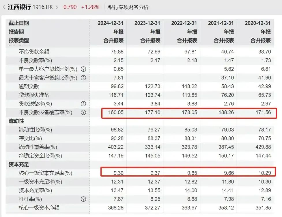 這也間接導致了一個現象:當前,中小銀行不良貸款率普遍較大型銀行高,可撥備覆蓋率遠遠要低,以江西銀行為例,2024年,江西銀行不良率2.15%,不良貸款餘額同比增加3.96%至75.88億元,其撥備覆蓋率已從2021年的188.26%下滑至160.05%。