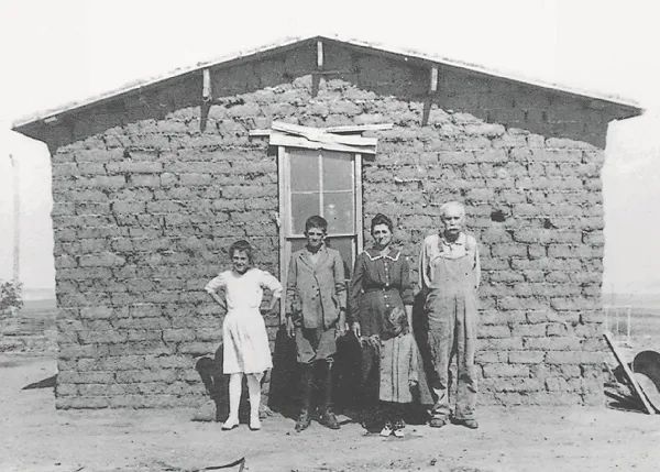 冬小麥區家庭和他們的草皮房子,日期不詳