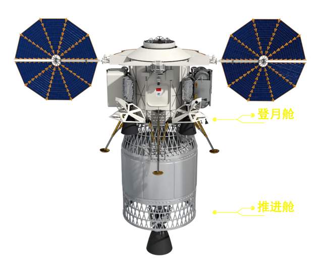 着陸器主體同時承擔下降與上升任務,推進艙負責環月制動和動力下降,在距月面百米高度分離,主體可重複使用(更換推進艙即可),大幅降低任務成本。