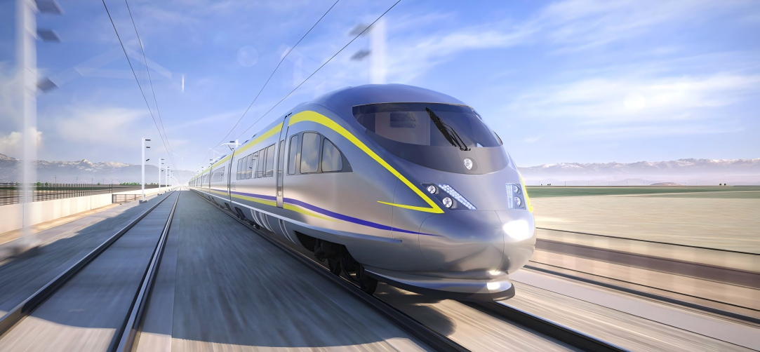 圖6 CAHSR線路及列車效果圖。目前車輛系統招標尚在進行中,本圖僅供參考。