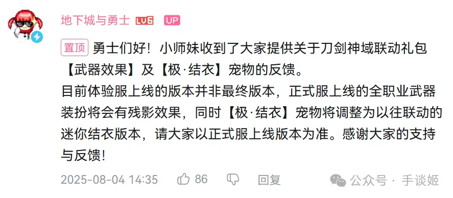 玩家們對這些比較不滿意,玩家反饋的問題很快傳到了DNF製作組耳中,並且給出瞭解決方案。