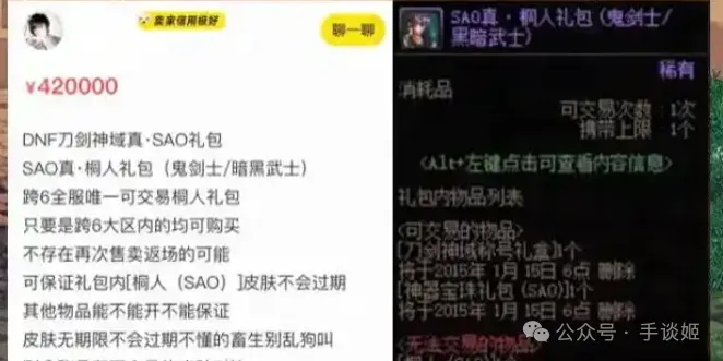 甚至有神人號商把聯動禮包當作了理財產品,一囤就是多年,甚至以100w的價格在網絡上售賣(後來降到了42w),畢竟他和大家想的一樣——這個聯動,已經絕版了。