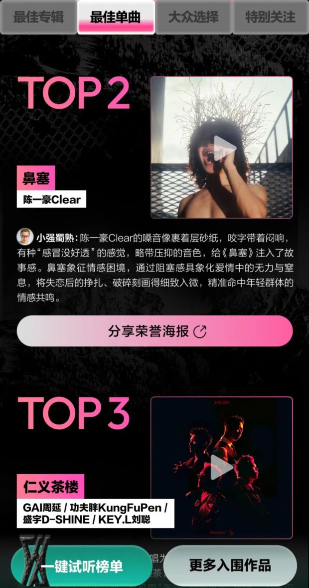 《新説唱2025》選手裏的陳一豪、翁傑、Rapeter、Vinz-T、SHarK等均榜上有名。這意味着節目的舞台創新絕非孤芳自賞,其影響力已經深度滲透行業肌理。選手在榜單中的強勢表現,印證了《新説唱2025》持續輸出行業新血的造星能力。