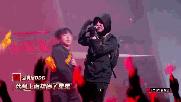 “這是我的老前輩DDG。”“這是我哥們兒王齊銘。”魔王王齊銘幫唱Underdog戰隊的鄧典果DDG,兩人的友誼非常好嗑,屬於兄弟有事一定幫你頂上的那種。合作舞台《周胖虎》的設計也非常有趣,兩人針鋒相對地吐槽消費主義亂象,結束時揹着包的王齊銘倉皇“逃竄”,把戲謔氛圍拉滿。