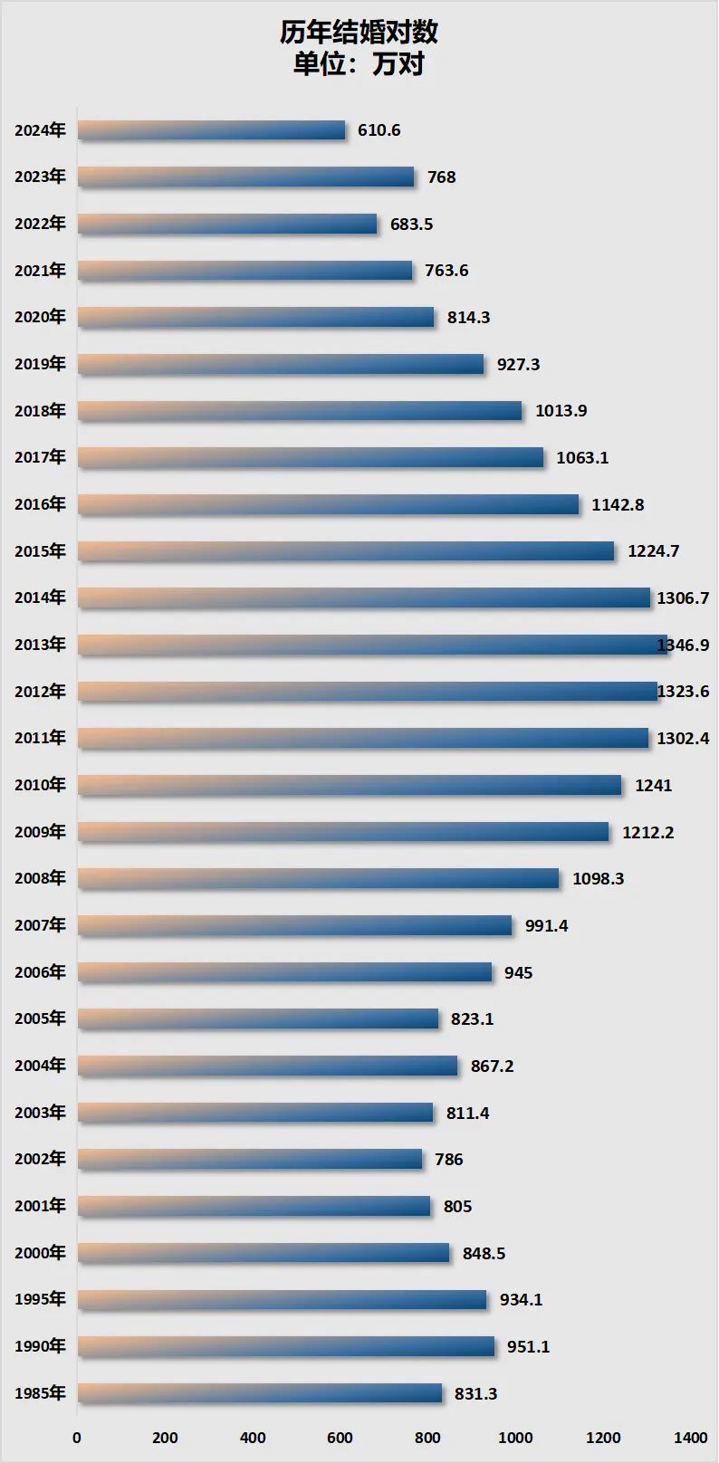 現在的中國也出現這種情況了,無論是結婚人數,還是生育率都出現大幅度下降——2024年,中國結婚人數創40年新低,總和生育率1.0左右,遠低於維持人口穩定的2.1的更替水平,在全球主要經濟體中倒數第二。