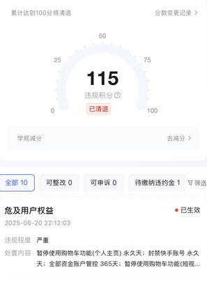 7月2日,廣東省的突破30分店鋪向“電訴寶”投訴稱遭平台無故扣除其5000元貨款及1000元保證金,並以"危機用户權益"為由強制清退店鋪。商家表示日常經營嚴格遵循服務標準,售前售後均有完善流程,卻突遭處罰且未獲具體違規説明。