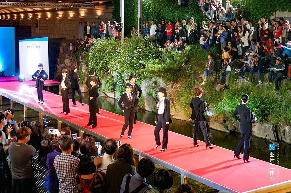 2019年的「清溪川水上時裝秀」尤為亮眼,來自首爾365時裝秀的設計師團隊,在溪流中央搭建露天T台,上演持續一小時的特別表演。模特們踏着溪水走秀,衣襬帶起細碎水花,與岸邊斑駁的老磚牆、閃亮的玻璃幕牆形成奇妙互動。