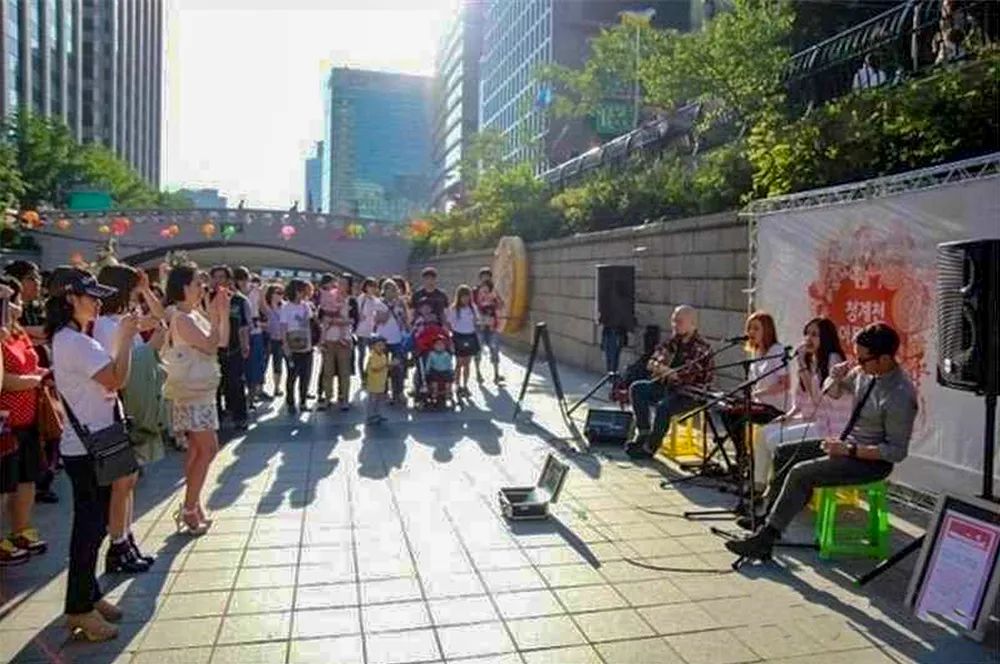 2022年清溪川的全面升級更是開啓了新篇章——允許演出的區域從上游進一步拓展至中下游河段,首批在牟亭橋、廣通橋等五處橋樑點位搭建舞台,民歌、爵士樂、傳統國樂與魔術表演輪番登場。