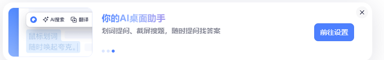 但夸克是擁有類似360的懸浮球和工具欄的功能的。在其他APP中,夸克的AI搜索、翻譯、AI寫作等功能也是可以調用的——這就是質變了,這意味着夸克可以跳出瀏覽器,成為一台電腦的AI助手。一台電腦只要安裝上夸克PC版,整台電腦都可以變成“夸克版AIPC”。