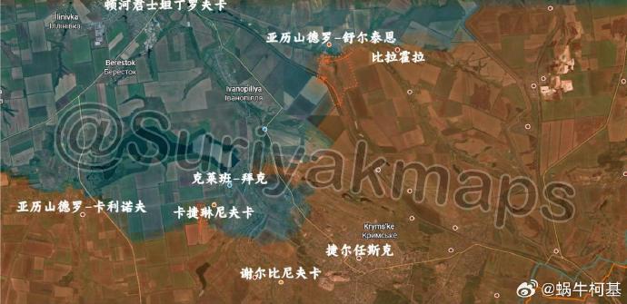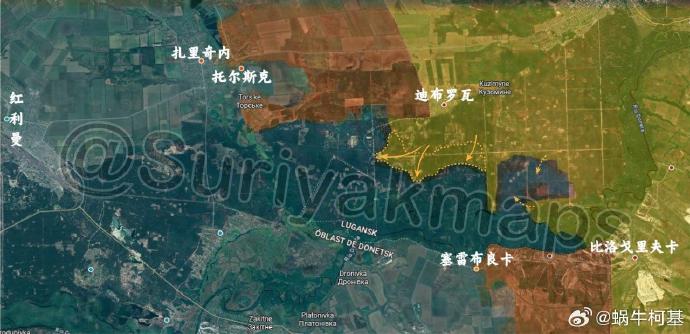 1、紅利曼:俄羅斯軍隊繼續向塞雷布良卡森林推進,佔領了一系列戰壕和克列明斯卡變電站(48°58'26.1"N 38°03'45.3"E)。
