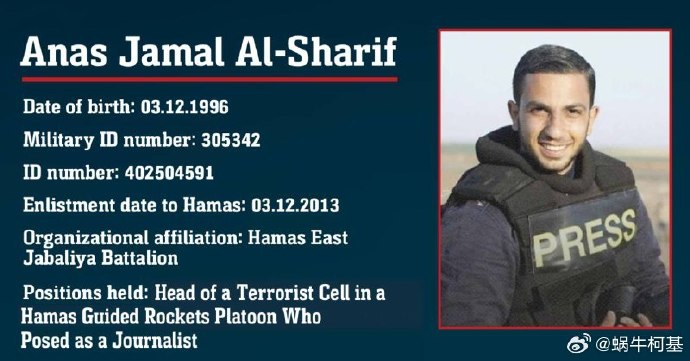 以色列在加沙殺死了半島電視台全體工作人員,然而以色列國防軍恬不知恥的發表聲明説那些記者是哈馬斯頭目。