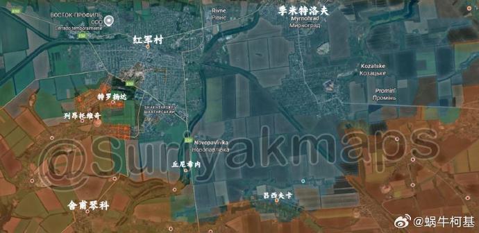 4、紅軍村:俄軍奪取了列昂托維奇北郊和特羅揚達,繼續向紅軍村市南部澤列尼夫卡區推進。