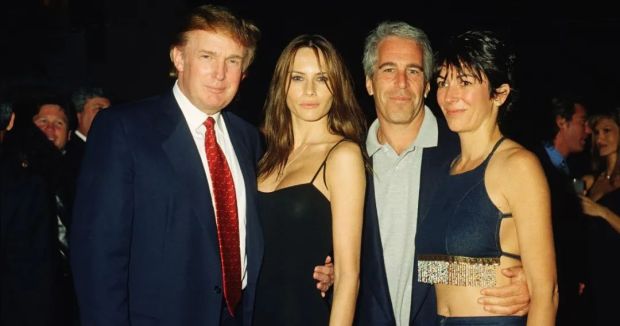 (圖片:特朗普、現第一夫人Melania、愛潑斯坦、吉斯萊恩·麥克斯韋,2000年。)
