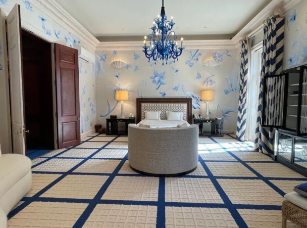 (圖片:愛潑斯坦的私人空間:包含卧室、按摩室和幾個衞生間的套房。照片顯示,在他牀上方的角落裏安裝了一個監控攝像頭。)
