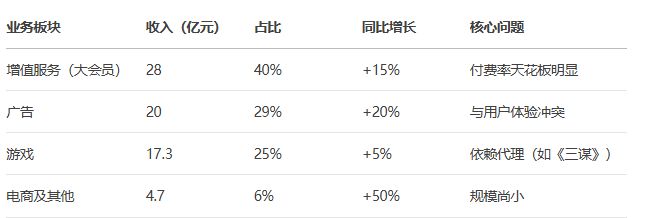 商業化挑戰的根源在於遊戲業務增長不穩定與廣告形式創新不足。B站遊戲業務曾連續六個季度負增長,2023年遊戲業務收入同比減少20% 。直到2024年,《三謀》等爆款遊戲才帶動遊戲收入回升,但這種增長缺乏可持續性 。與此同時,廣告業務雖然增長迅速(2025年Q1增長20%),但用户對廣告的接受度有限,如何在保持社區氛圍的同時實現廣告收入增長是關鍵挑戰 。