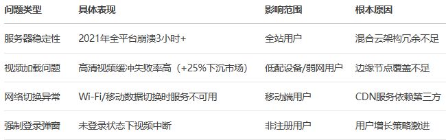 首先,技術架構的混合雲模式和CDN依賴導致平台穩定性不足,尤其是在用户規模快速擴張的背景下。