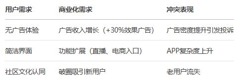 其次,用户羣體特徵(年輕化、高學歷、強消費)與商業化需求之間的矛盾日益凸顯,如何在保持社區氛圍的同時實現商業價值是核心挑戰。