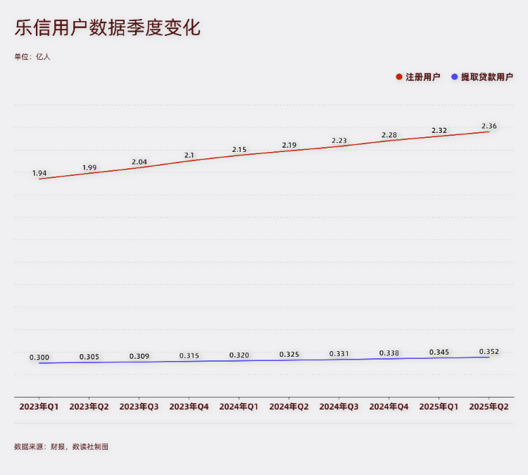 企業的α增長已經非常不明顯,靠的是整個助貸行業的β增長。二季度註冊用户數達到2.36億,提取借款的用户量3520萬,回顧最近10個季度,這兩項數據幾乎是一條平滑向上的曲線。