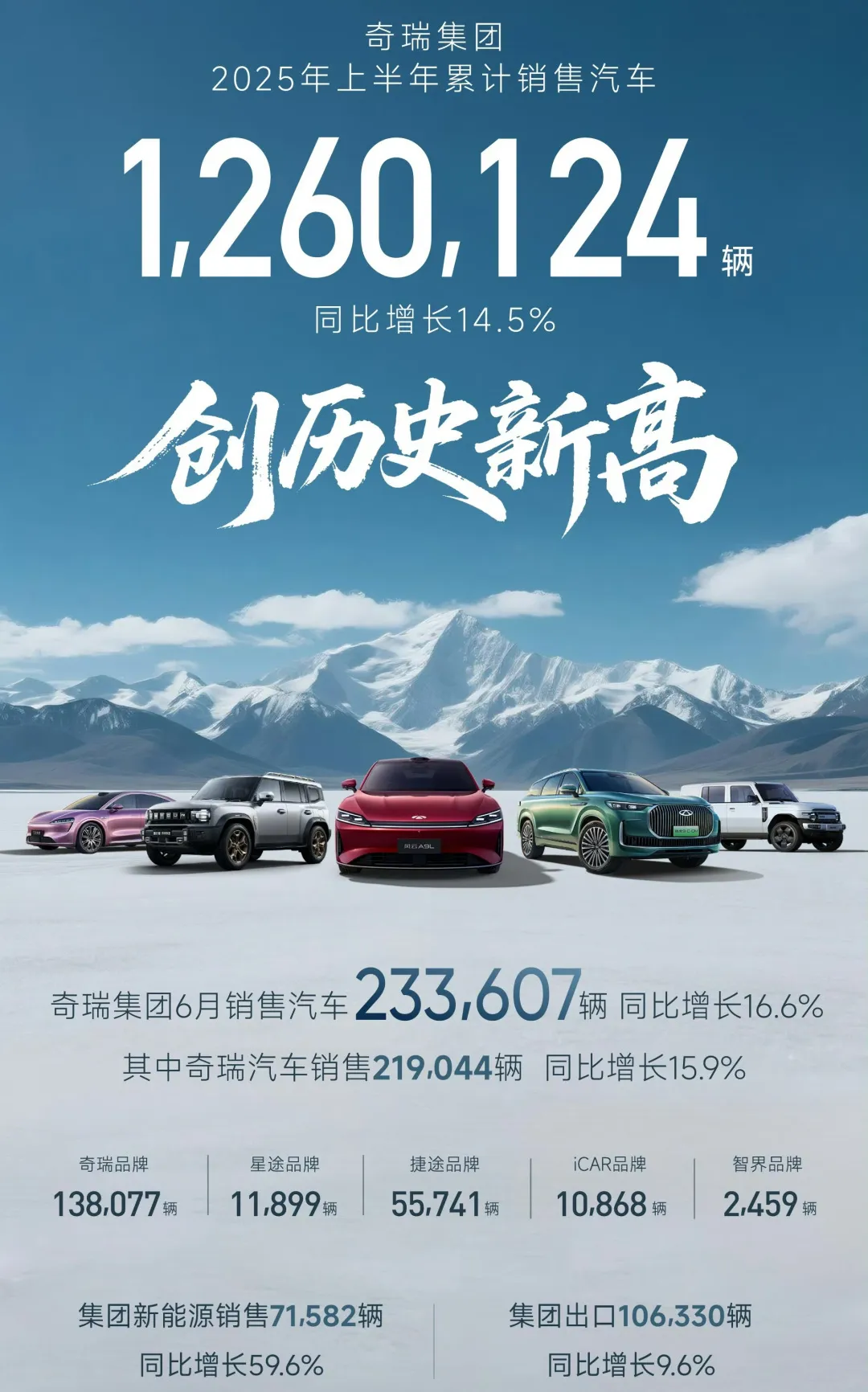 數據顯示,今年上半年,奇瑞集團銷售汽車126.01萬輛,同比增長14.5%;新能源汽車35.93萬輛,同比增長98.6%。其中,風雲A9L、星紀元ET、iCAR V23等都成為了消費者選擇的熱門車型。