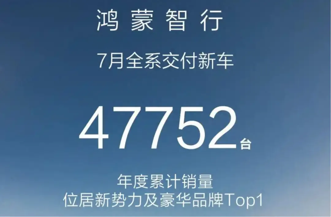 比如,剛剛過去的7月,一度“遙遙領先”的理想跌出了新造車月交付榜前三。而在2025年暗淡了許久的鴻蒙智行,自5月重回榜單前三之後,已經連續三個月保持着不錯的成績。