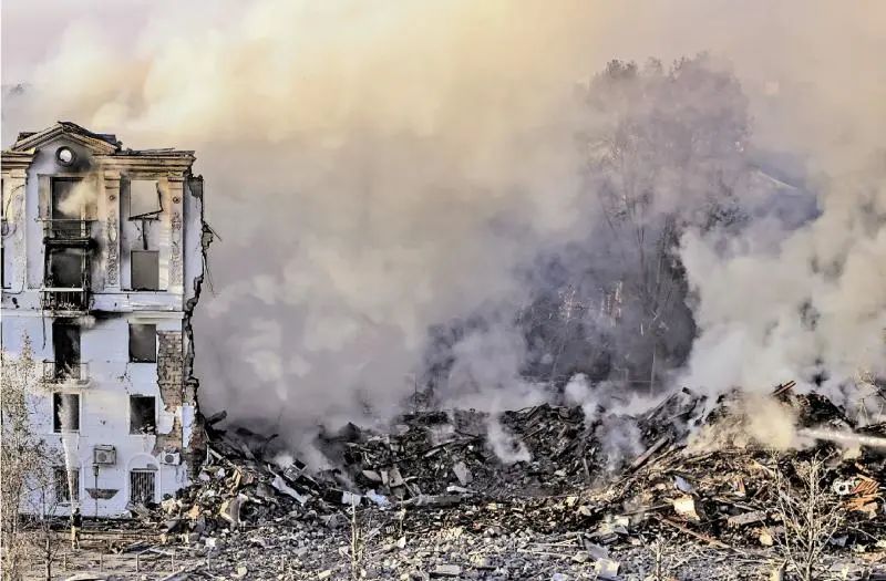 頓涅茨克一棟住宅遭到空襲。(圖源:美聯社)