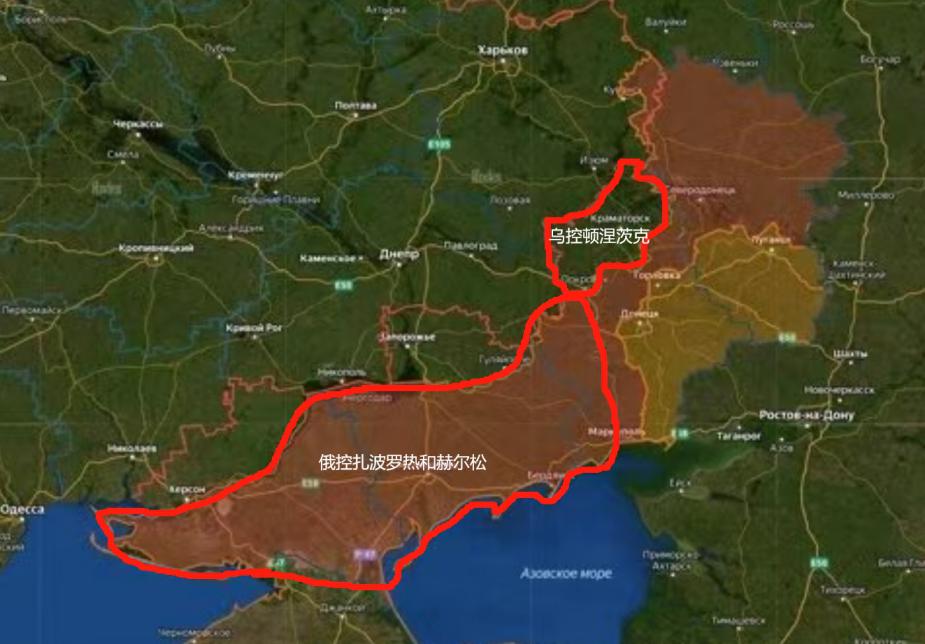 其實看地圖就知道,俄控扎波羅熱和赫爾松地區與烏控頓涅茨克的面積差距有多大。而俄羅斯一旦失去控制的扎波羅熱和赫爾松地區,烏克蘭只要炸掉克里米亞大橋就可以將克里米亞再次收入囊中。