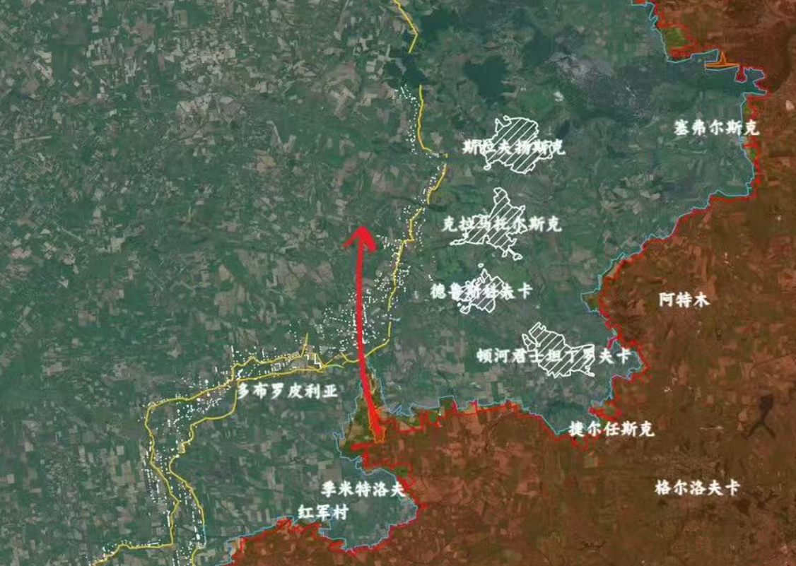 這次的突破非常激進但有效,也跟棉花絮之前的行動判斷一致,也是尋求切斷烏軍主補給線的同時拿下紅軍城後方超大型後勤點--多布羅皮利亞。