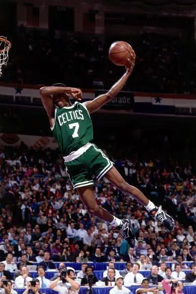 當然,光有技術還不足以讓鋭步的球鞋闖入大眾視野。鋭步選擇簽約了NBA球星迪·布朗,1991年,迪·布朗在NBA全明星賽上戰勝喬丹的“矇眼扣籃”動作,更是讓鋭步再次迎來高光時刻——迪·布朗腳上的球鞋在推出後的18個月內狂銷400萬雙,為鋭步創造了5億美元的收入。