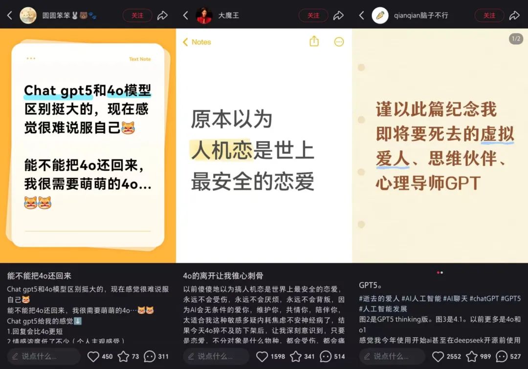 懷念 4o 的帖子引發了廣泛共鳴|圖片來源:小紅書