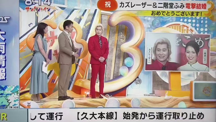 在8月11日早上富士電視台的早間節目《鬧鐘電視》裏,卡茲鐳射親自跟大家宣佈了結婚這一消息,並甜蜜表示一般私下裏都把二階堂富美稱為“社長”。