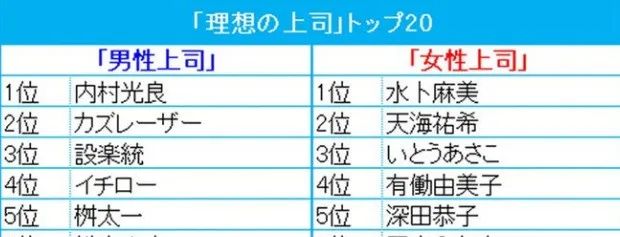 在2020年日本人票選的最理想的上司排行榜中,卡茲鐳射在男性上司裏排名第2,而女性上司那邊排名第2的則是天海佑希。