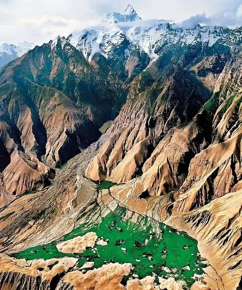 綿延的雪嶺終年不化,隨着山勢起伏,像一條銀龍蜿蜒盤旋。狂風呼嘯而過時,雪霧瀰漫,朦朧中的山峯更顯雄偉,向世間宣告着它們的威嚴與剛毅。
