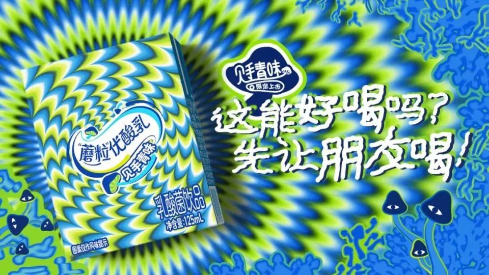 除了此次大力宣傳的嚼檸檬,伊利優酸乳還推出了見手青味的“蘑粒”優酸乳,在味道上搞起了“抽象”,引得一些網友紛紛買來試水,一個真敢出、一羣真敢喝。