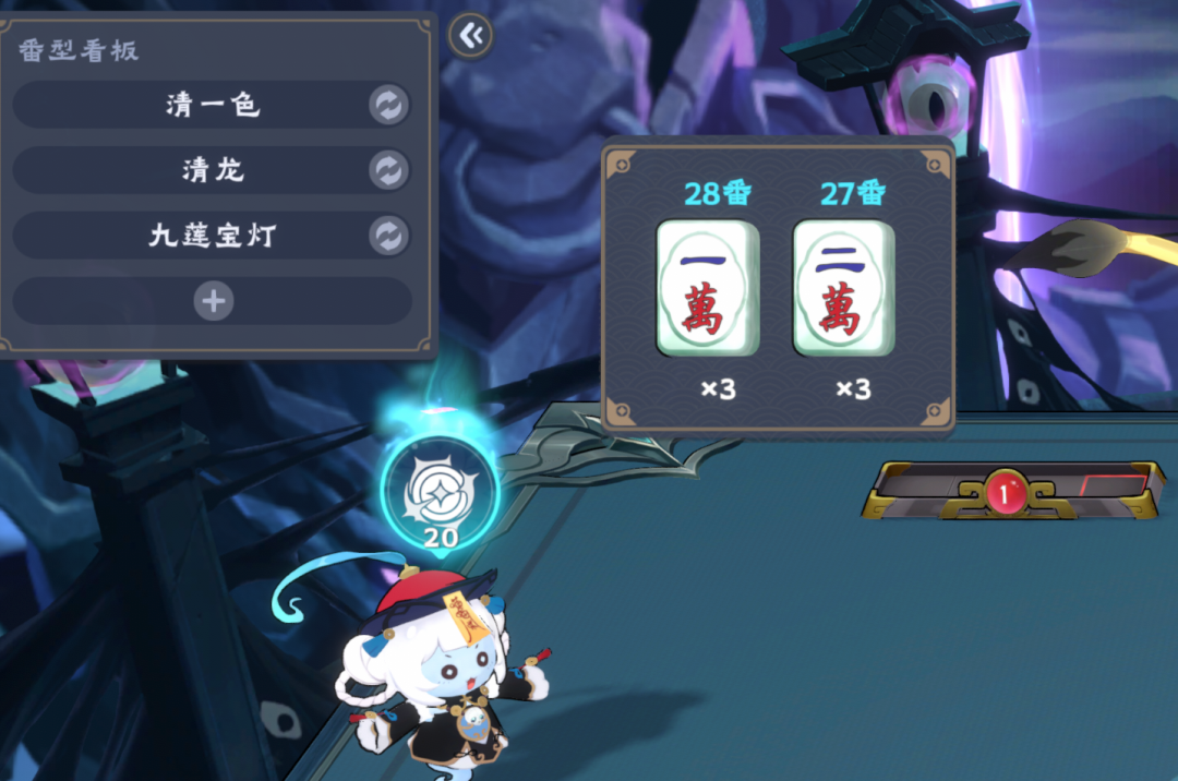 麻將桌的右下角,就有個胡牌區,胡牌上限取決於成長而不固定,直到牌全部出完,能胡多少次就可以累計多少次的胡牌分數。
