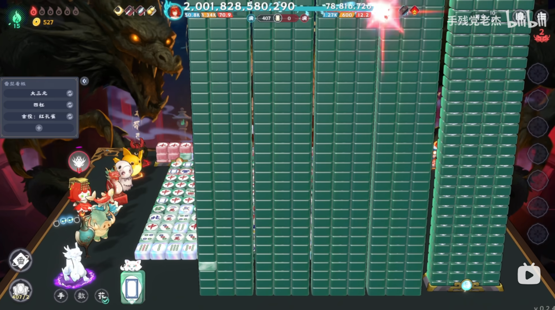 尤其是當構築成型,湊滿倍數和番數,得分直接飆到幾千億,麻將牌堆到對手咯吱窩下面的時候,屬於是腦幹都爽麻了。