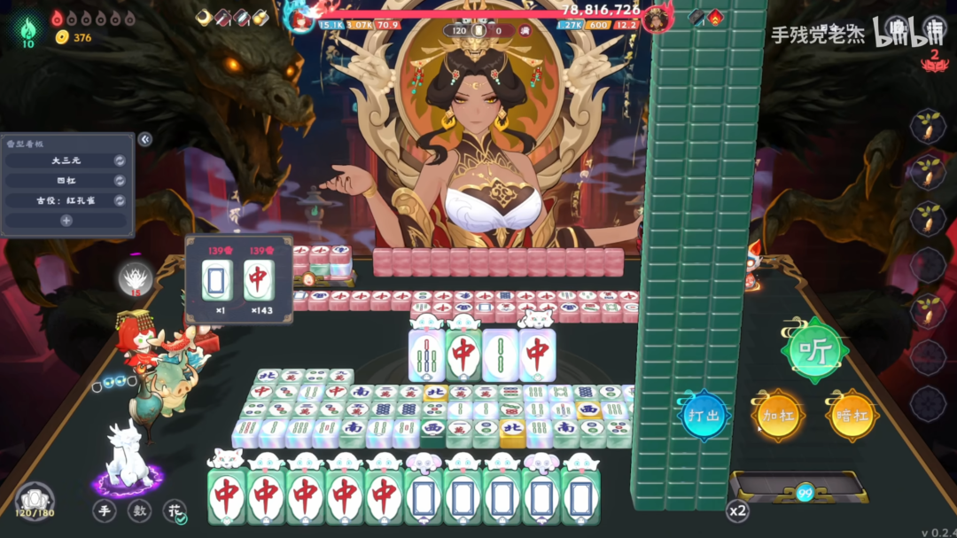 而且,由於遊戲的規則裏,可以變化牌面,所以會出現牌庫裏有 6 張九條,10 張六萬,甚至滿手夭雞的情況。