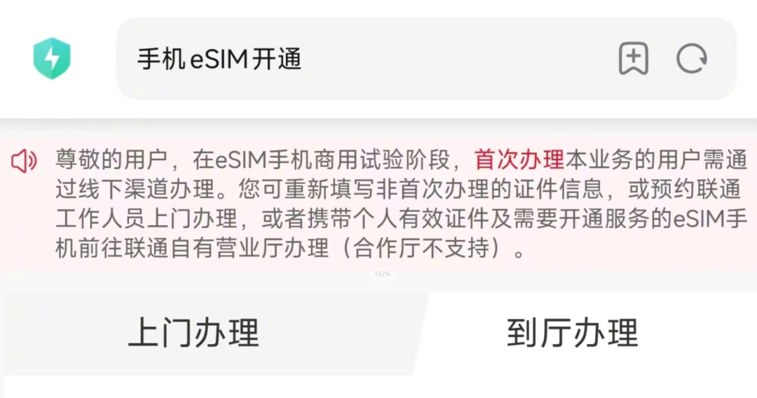 但以國內目前的大環境,大概率還是得跑營業廳,像目前中國聯通 eSIM 手機業務就要求首次辦理的用户必須 “ 上門辦理 ” 或 “ 到廳辦理 ”,如果是線下操作,那辦理流程其實跟實體 SIM 卡沒啥本質區別。