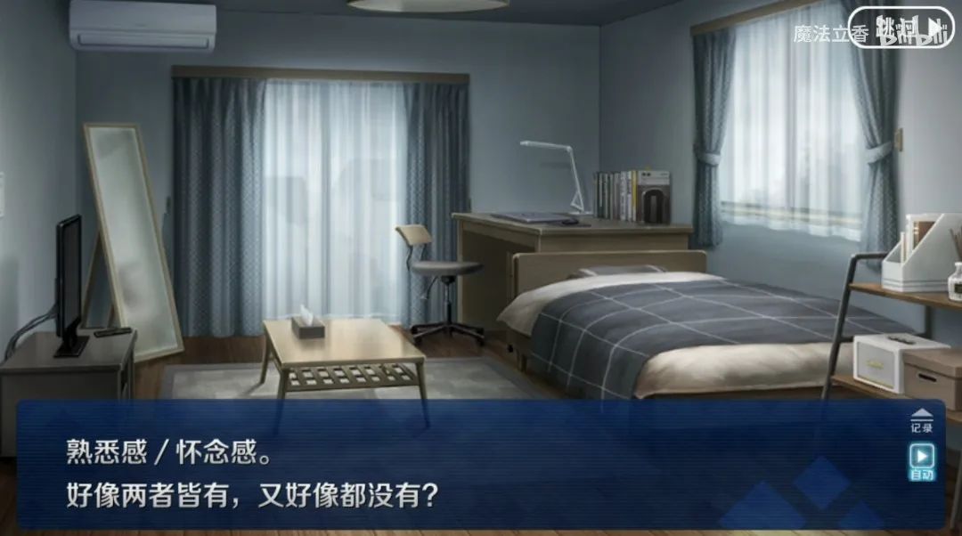 我試着解釋:你看,第二部七個異聞帶打完了對吧,現在這個劇情就是類似“所羅門”之前的那個階段了。然後在奏章2裏你就進精神空間去上學了,這房間就是你卧室,對對,校園日常,有很多老熟人……呃,有沒有刀?還是你自己去玩吧。