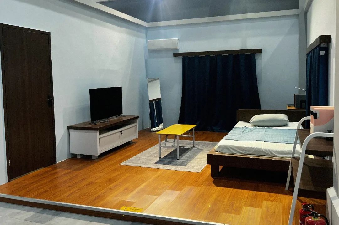 木地板、單人牀、電視機、空調——再普通不過的陳設,像是任何一間城市居民的單人起居室。