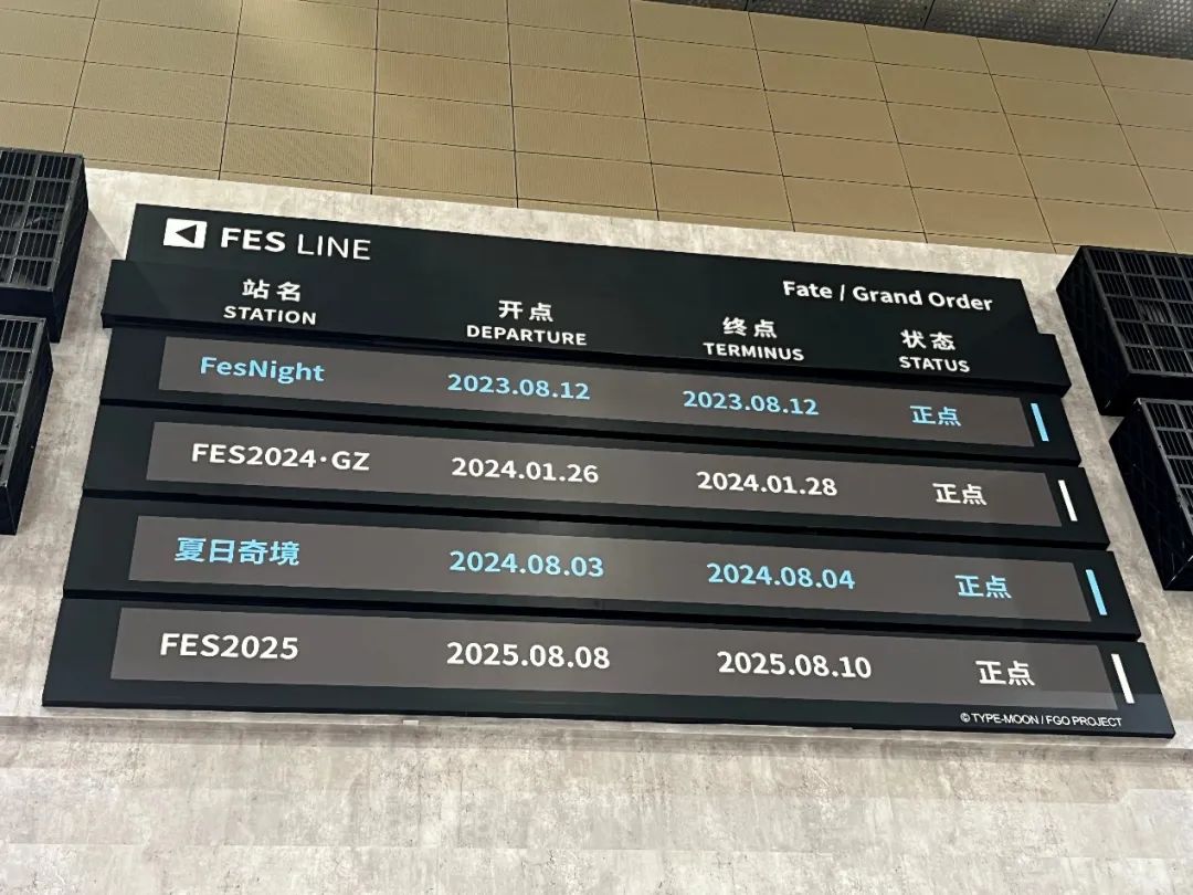 一早踏進會場,迎接我的不是傳統的簽到台,而是FES標誌性的“車站”佈景——站牌、月台、列車時刻表,彷彿下一班就是開往迦勒底的列車。