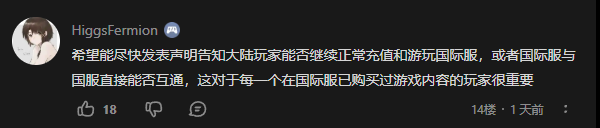 Guy:我們可以確認不會禁用現有版本的支付選項(如支付寶/微信支付)並將繼續支持中國玩家現有賬號、遊戲體驗和語言選項。現有玩家可以放心,遊戲體驗不會受到任何影響。此外,他們可以選擇繼續在當前版本上游戲,或者在中國版上線時建立新賬號,挑戰新的排行榜。
