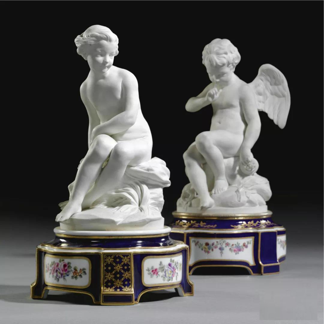法孔涅設計的塞夫勒裸瓷雕塑,丘比特與賽琦配彩釉底座