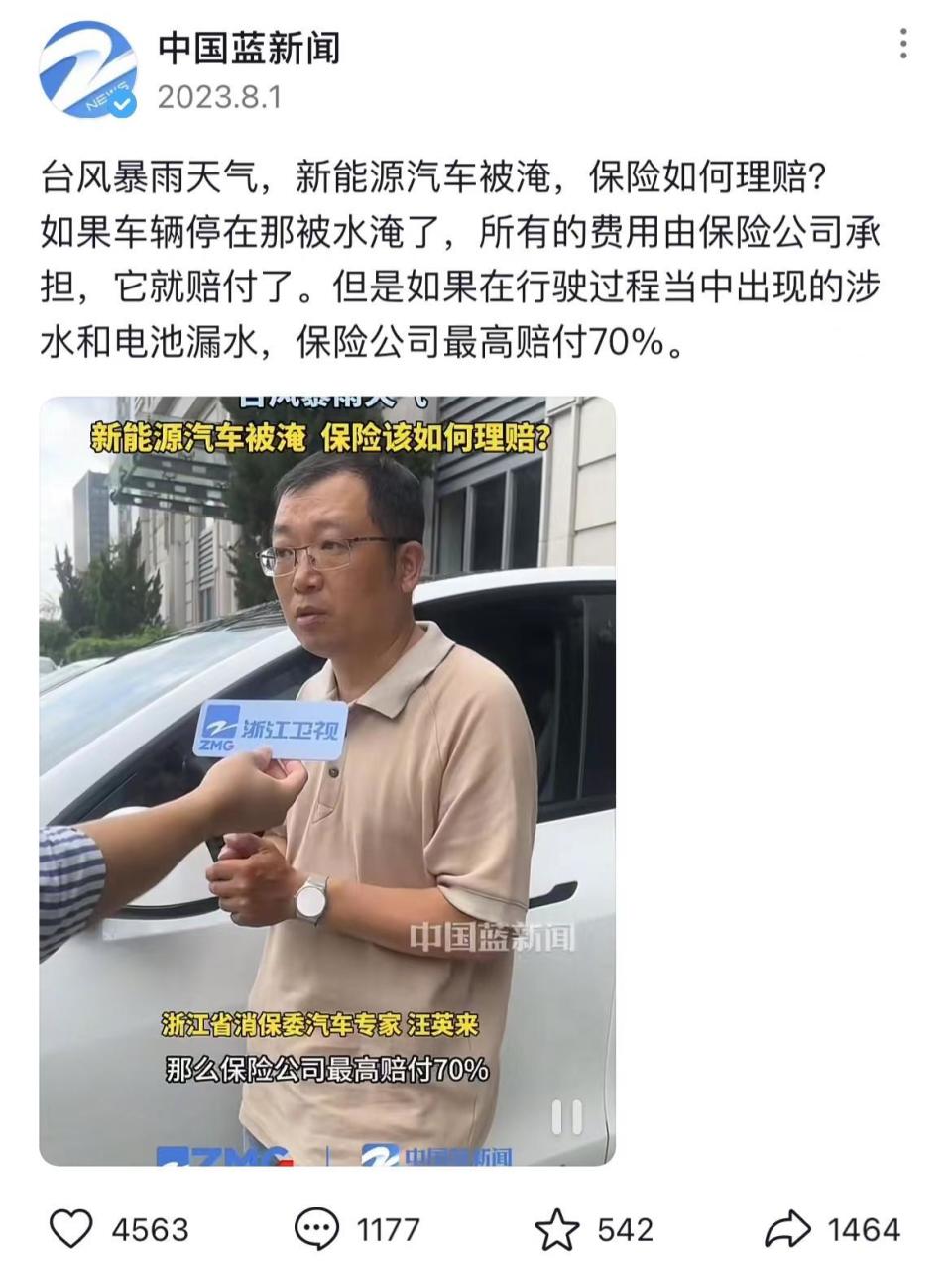 雖然油車新能源車都有泡水專屬車險,但新能源車如果在行駛過程中出現涉水與電池漏水,保險公司最高賠付70%。加上其他的電子元器件被泡水的隱患,這其實是車主很大的一個痛點。