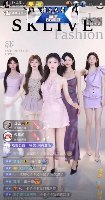 “團播”,也叫“多人才藝直播”,顧名思義,是多名主播一起出鏡的組團直播,形式大多以跳舞、唱歌的表演為主。和常規的直播間相比,團播的舞台看上去更加“專業”,有編導、燈光、運鏡、控場主持人……直播團員們既是隊友,也是競爭關係,他們需要被觀眾們通過打賞的方式,決定表演內容和互動方式,以及表演的順序、站位、登台次數等等。