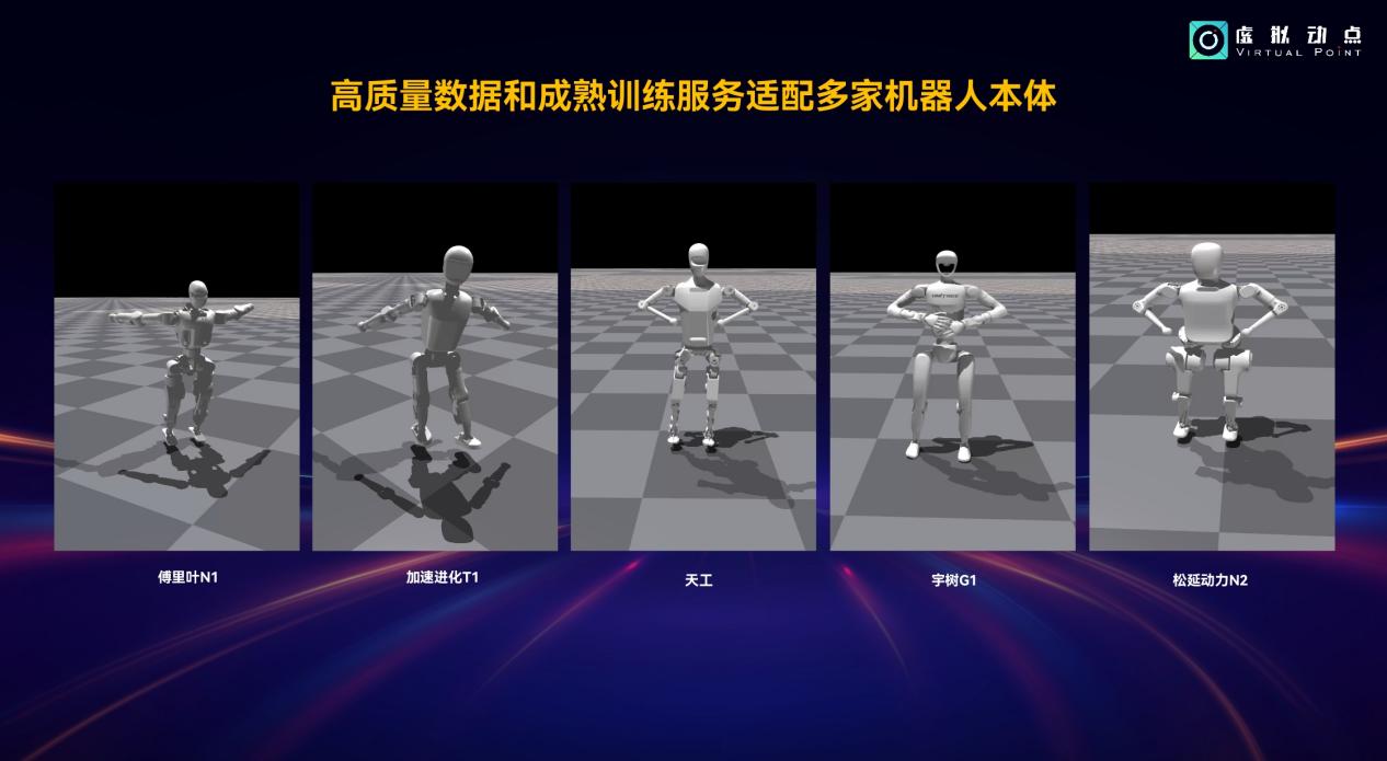 虛擬動點憑藉在各行業和領域積累的數據迅速入局具身智能,已與多家頭部廠商建立合作關係,積累多項成果賦能案例,同時技術支持包括上海、北京、大灣區等地的多個機器人訓練場,助力其科研成果孵化,加速具身智能產業化應用落地進程。