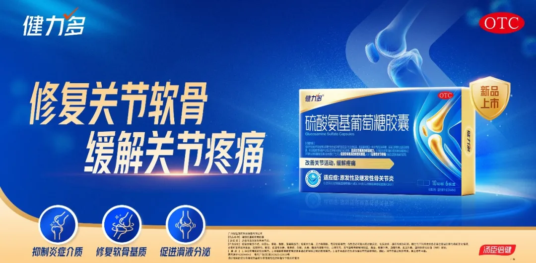 而7月推出的戰略級新品“健力多硫酸氨基葡萄糖膠囊”更具里程碑意義。作為其首款OTC產品,它與現有營養補充劑形成“治養結合”方案,精準切入銀髮羣體的骨關節健康需求。