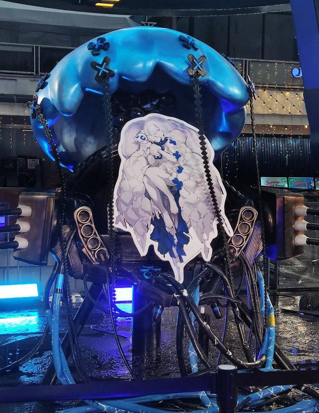 現場夏日《碧藍航線》主題場景的各個佈景中,出現着如遊戲裏一般點綴在各處的“黃雞”;