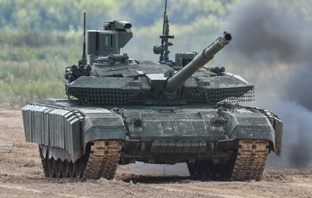 俄軍T-90M在改進中,取消了早期安裝的格柵式裝甲